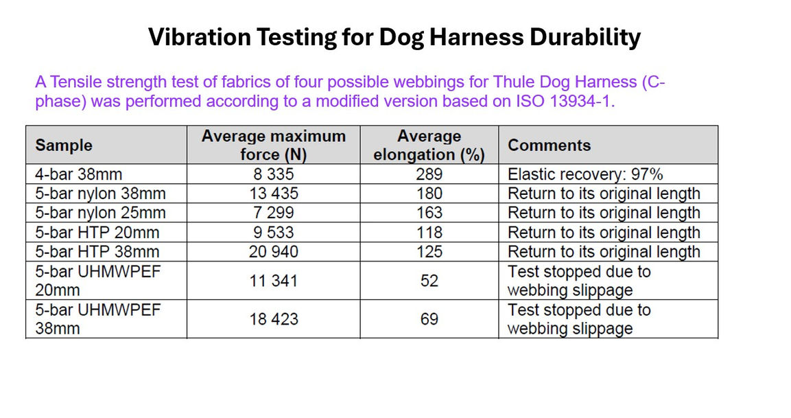 This lab test evaluates the strength and durability of various sizes of dog harnesses. Specifically, this is the Thule Project Buddy Dog Harness lab test.